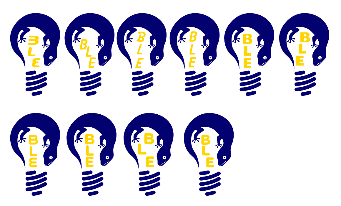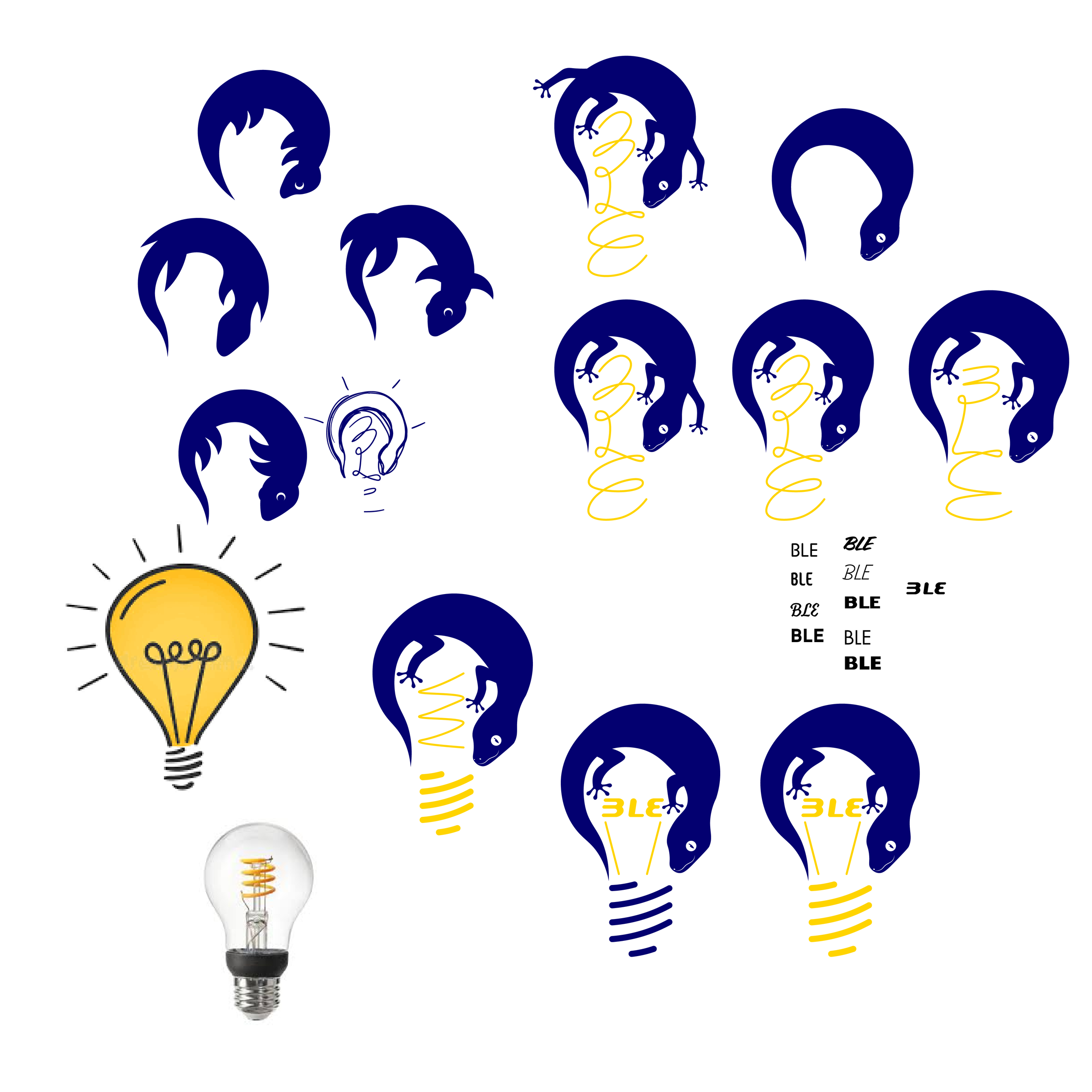 The final version of the design features the blue lizard, curling around the letters to make up the silhouette of the lightbulb. The colors changed to a lighter blue and a more orangey yellow to bring more energy to the brands color palette.
