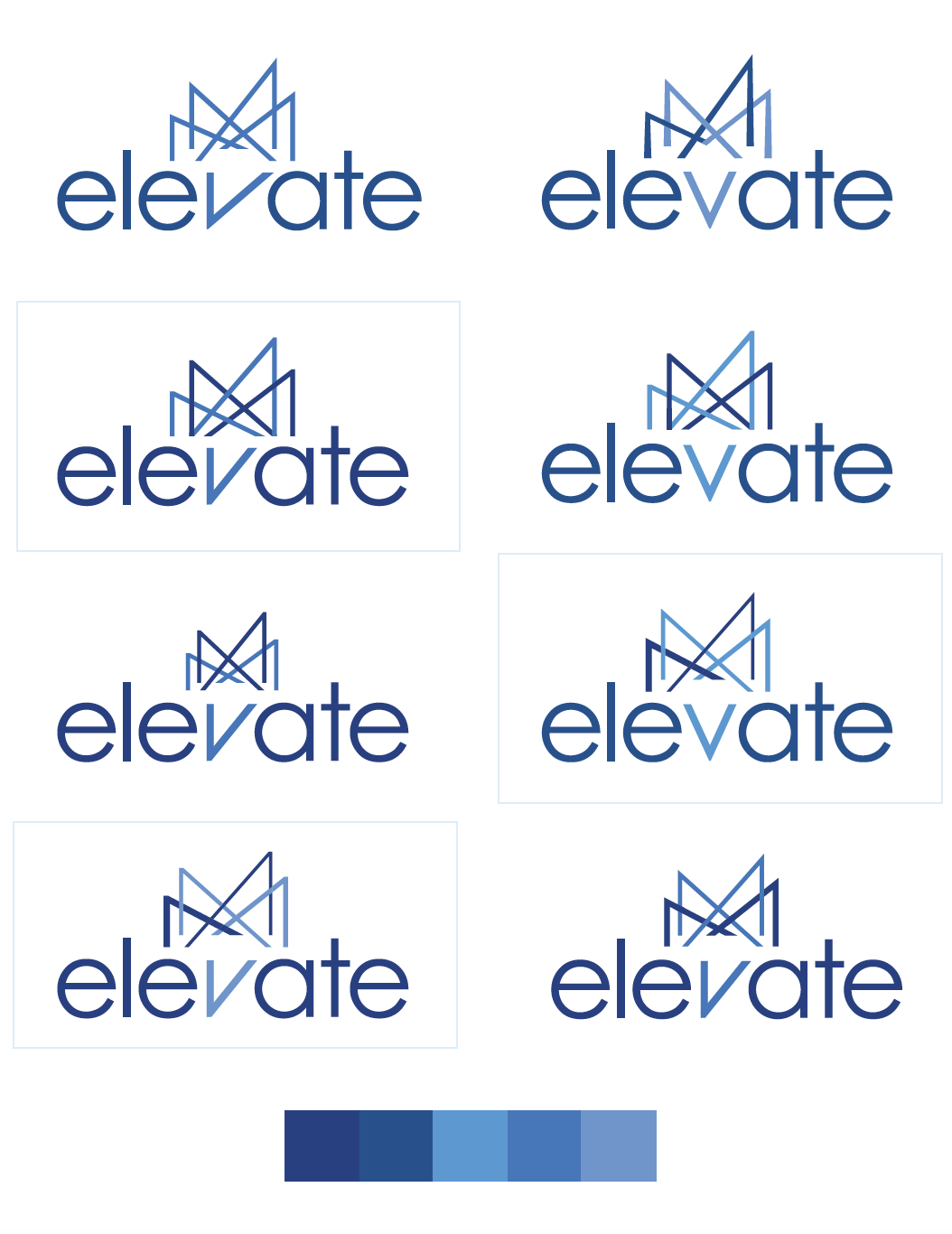 When I started this project I wanted to differentiate it from the thousands of elevate logos that already exist. I focused on buildings, and playing with the spacing of the word to show it “elevating”. I also tried different fonts and variations of upper and lowercase letters.